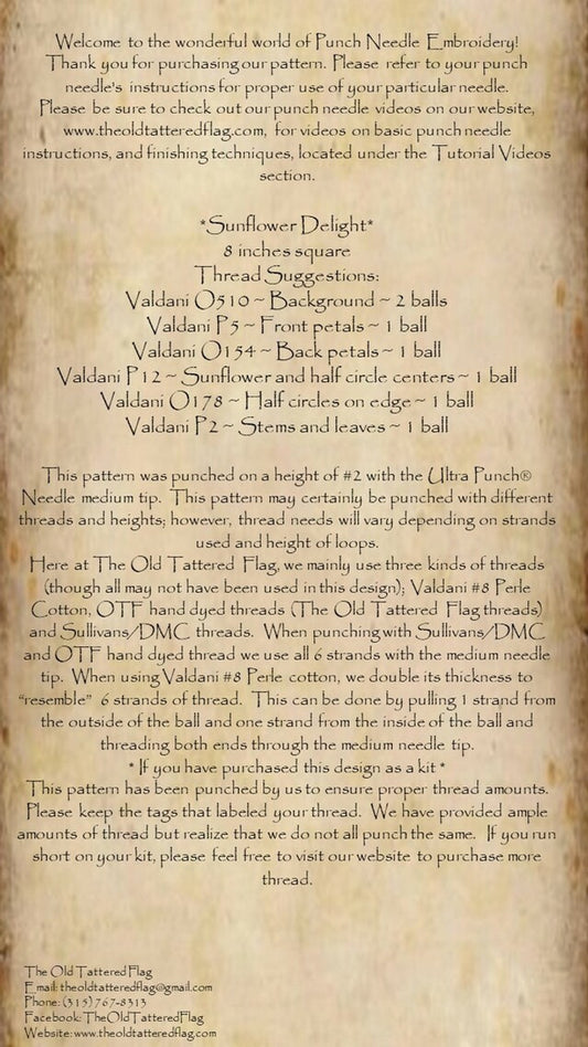 Sunflower Delight Punch Needle Pattern
