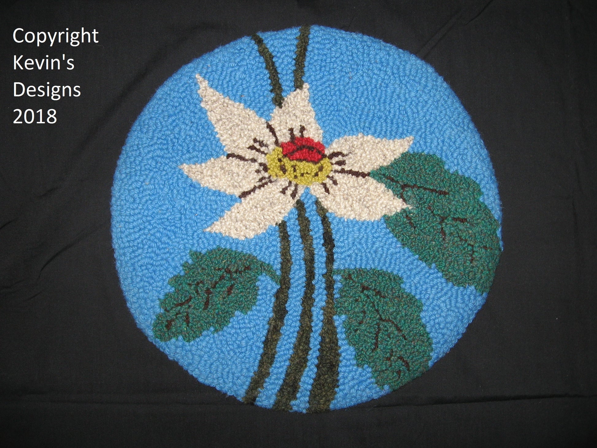 14" x 14" square or 14" circle. This pattern is available on all types of backings. Designed by Kevin LeMoine.