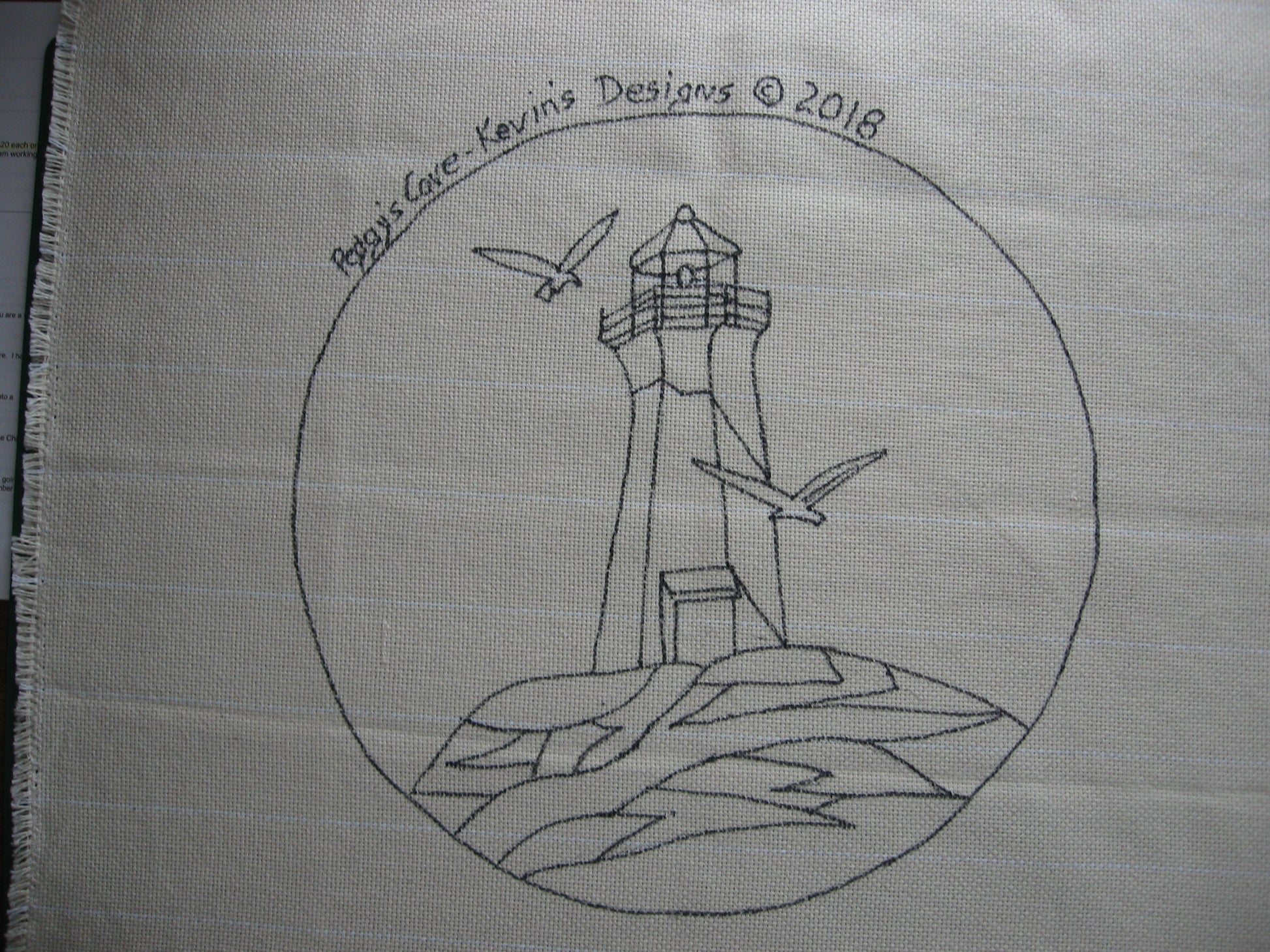 14" x 14" square or 14" circle. This pattern is available on all types of backings. Designed by Kevin LeMoine.