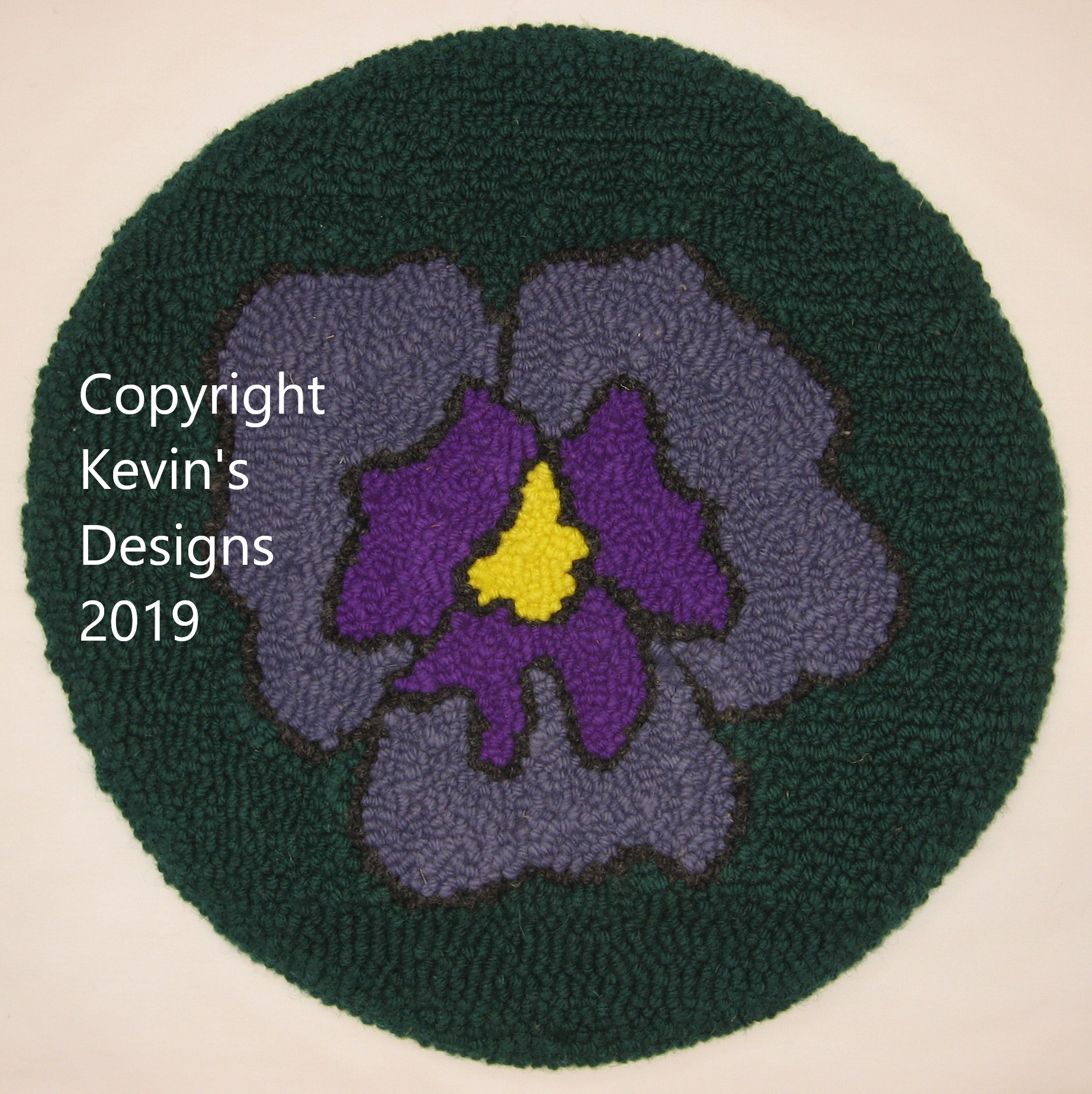 14" x 14" square or 14" circle. This pattern is available on all types of backings. Designed by Kevin LeMoine.