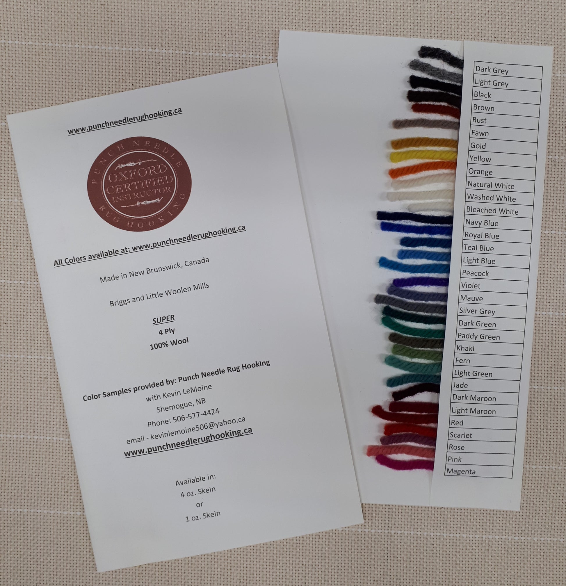 Briggs & Little - 100% wool, Super 4 ply yarn made in Harvey, New Brunswick. This 4 ply yarn is great to use in your Regular Oxford Punch Needles. Sold by the 4 oz skein. 33 Colors to choose from. Note that monitors and printers may vary from the actual yarn color. Yarn ply may be different than shown.